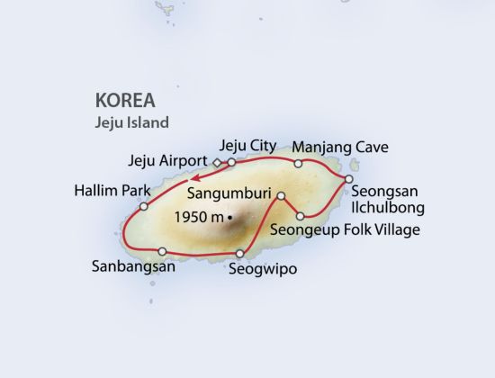 <ul><li>Malerische Westküste der Insel</li><li>Spektakuläre Wasserfälle</li><li>Wildromantischer Hallasan NP</li><li>Vulkankrater Seongsan Ilchulbong</li><li>Mystische Manjang Höhlen</li></ul>