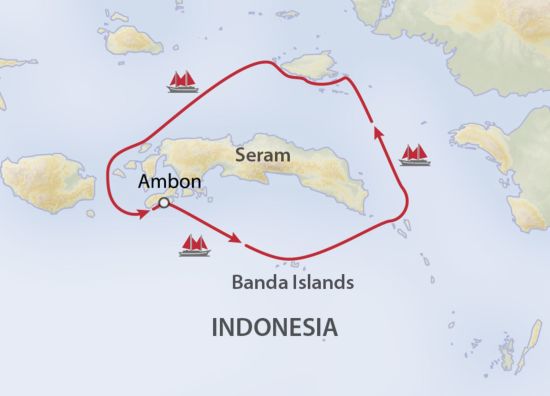 Von der indonesischen Hafenstadt Ambon aus führt Sie die luxuriöse «Aqua Blu» Kreuzfahrt zum Ursprungsort der Muskatnuss. Lauschen Sie den spannenden Geschichten über die abgelegenen Gewürzinseln während Sie durch eine paradiesische Szenerie der teils unbewohnten Inseln tuckern. Und – nicht ganz nebenbei – tauchen Sie in eine der schönsten Unterwasserwelten unserer Erde ab. Entdecker-Herz, was willst Du noch mehr?