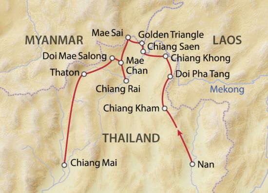 <ul><li>Bezaubernde Tempel von Nan</li><li>Idyllische Velotour durch Chiang Kham</li><li>Begegnung mit der Tai Lue Minderheit</li><li>Einsicht in die Web- & Stickereikunst</li><li>Panorama Aussicht vom Doi Pha Thang</li><li>Wunderschöne Fahrt entlang des Mekongs</li><li>Tempel & Ruinen von Chiang Saen</li><li>Sagenumwobenes Goldenes Dreieck</li><li>Mitreissendes Opium Museum</li><li>Nördlichste Stadt Mae Sai</li><li>Ergreifende Tham Luang Höhle</li><li>Besuch traditioneller Töpferei</li><li>Ästhetische Tempel von Chiang Rai</li><li>Verstecktes Khun Sa Museum</li><li>Einblick in die Geschichte des Opiums</li><li>Doi Mae Salong & dessen Bergstämme</li><li>Malerische Bergstrecken unterwegs</li><li>Optionale Verlängerung Sukhothai</li></ul>
