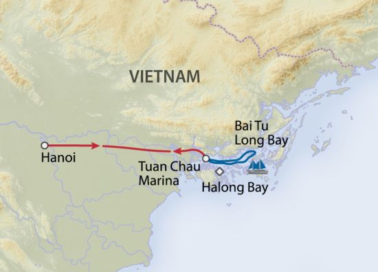 À l'est de la célèbre baie de Halong s'étend la baie de Bai Tu Long, un joyau caché qui séduit par sa beauté intacte et son atmosphère paisible. Alors que la baie de Halong est connue pour sa dense concentration d'îles calcaires, la baie de Bai Tu Long offre des paysages plus vastes, où d'imposantes formations rocheuses émergent de l'eau tels des géants solitaires. En comparaison, la baie de Bai Tu Long est moins touristique, ce qui en fait une destination idéale pour les voyageurs en quête de tranquillité et d'authenticité. La baie fait également partie du patrimoine mondial de l'Unesco et abrite de nombreuses curiosités telles qu'une grotte avec d'impressionnantes stalactites et stalagmites, des villages de pêcheurs flottants et des baies pittoresques. Ici, vous pouvez vous délasser dans un décor naturel à couper le souffle, faire du kayak, nager ou simplement profiter des vues fantastiques.
