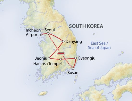 Découvrez la diversité de la Corée du Sud sous des perspectives uniques: à pied, en bateau et à vélo. Ce circuit fascinant et actif vous mènera non seulement vers les sites connus, mais aussi vers des lieux hors des sentiers battus. Plongez au coeur de la culture et de l'histoire et découvrez la véritable âme de ce pays impressionnant. Un moment inoubliable vous attend avec une nuitée dans l'un des plus grands temples du pays – une expérience hors du commun.
