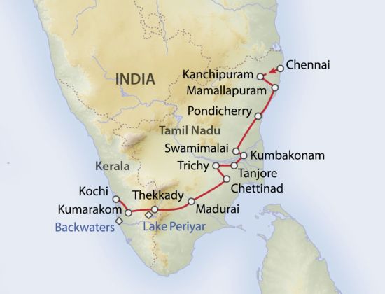 Lors de ce ciruit complet, vous partirez à la découverte de la diversité du sud de l’Inde. Vous serez séduit par la culture riche et variée, les paysages sublimes qui abritent une faune et flore très diversifiées et par les témoignages bien conservés des diverses époques. Puis un tour en bateau vous permettra de partir à la découverte des pittoresques Backwaters du Kerala et de visiter des villes fascinantes et d’anciennes colonies.